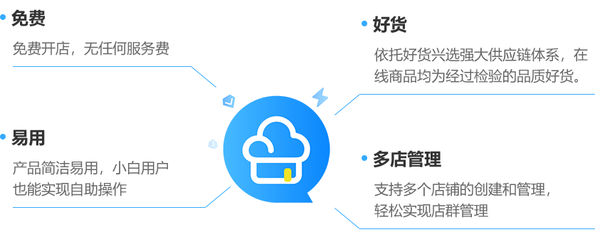 好貨云店借助好貨興選SAAS服務(wù),從而提升新媒體流量渠道電商變現(xiàn)效率與收益。強(qiáng)大的供應(yīng)鏈能力,為有流量的網(wǎng)紅/社群等新媒體B端用戶提供免費(fèi)一鍵開店。
